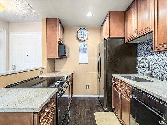 STOP RENTING! So Affordable! Completely updated!!! Everything new from cabinets, granite kitchen and bath counters, carpet, floors, doors, fireplace facade, new paint, lighting, heaters, all appliances including fancy new black stainless stove/oven/range, dishwasher, refrigerator, and microwave. Laundry in-unit. Appraised at nearly $140K. Great City Center location near everything. Air conditioned, community pool, minutes to 225 at Mississippi, seriously what more could you want. Could be a great investment property as well. About a half an hour drive to DIA, half an hour to Downtown Denver and about ten minutes to Anschutz medical campus, 15 minute drive to Buckley (VA eligible) and so much more. Walking distance to Aurora Metro Center Light Rail Station. Don't miss this one, it won't last. Other amazing updates include all newly tiled shower w/ bench and new door and fixtures, fireplace brick facing, hearth and mantle, recessed can lighting in kitchen, granite counters and new backsplash, under counter mounted sink, disposal, under sink water filter, water line plumbed to refrigerator for ice and water dispensing, new electrical switches, new heaters replacing baseboard heaters, new oversized slider door to bedroom, new 6 panel doors and hardware throughout, programable thermostat, new exterior sliding door to patio, new exterior storage closet door, new blinds to patio, building has newer exterior siding and the building is scheduled to get all new elevators!