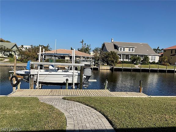 Deep water channel home in desireable Palm Acres. Damaged by hurricane Ian; interior cleanup has occurred; walls to studs. Open floorplan, large lanai, 2-car garage w/opener. All room dimensions are approximate; buyer to confirm if important. Easy access to gulf - no bridges! Seller is willing to remove the house if vacant lot preferred.