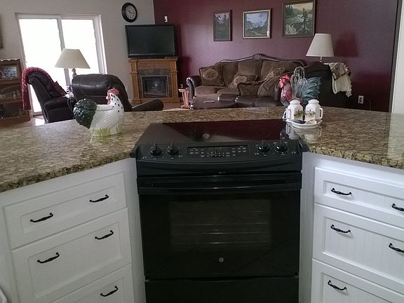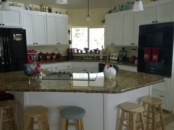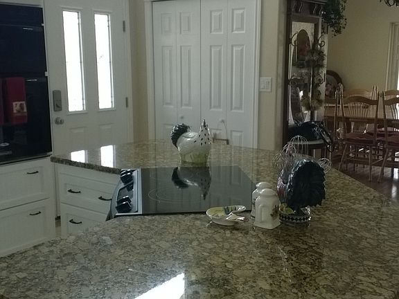 Beautiful custom built one level home on 2 ac with a wonderful wraparound covered porch/deck, open concept kitchen/dining/living area. Interior features include granite slab countertops, large walk-in pantry, large kitchen island with room for informal dining plus glass top stove and oven plus a 2nd wall oven and microwave. For the baker in your family, all outlets are on separate circuits so you won't trip breakers when using multiple kitchen appliances. Beautiful tile floors lead from side door entrance through hall and continue in kitchen and main entrance with a wonderful decorative inlay tile design.