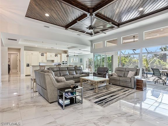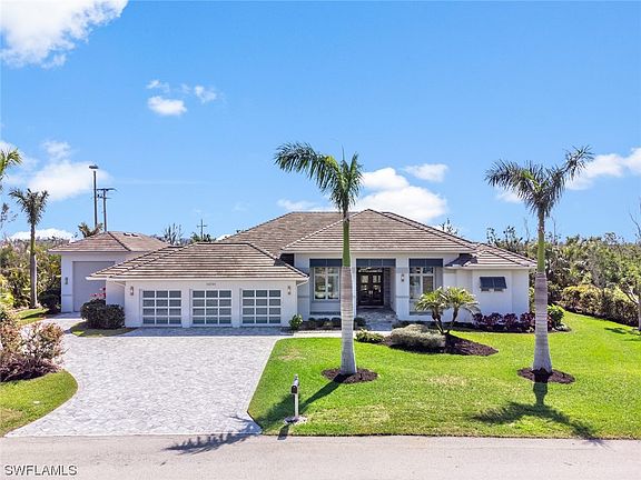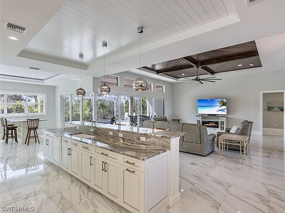 Located near Sanibel, Palm Acres, and Shell Point this nearly new 3,376sf coastal contemporary on 166x120 corner lot has it all including 40x17 detached RV boat storage. Absolutely stunning in every detail from lushly landscaped curb appeal to glass panel garage doors! Custom built 2018, light and bright, great room concept, 10-12ft ceilings with trays throughout. A must-see property, look closely at the location, photos, and video! No HOA, no restrictions, no fees. Impact rated windows and doors. Master suite has 2 full baths, 2 walk-in closets, 2 sinks, vanity, and giant shower. Spacious kitchen, induction cooktop, self-closing cabinets, and 2 walk-in pantries. Laundry room is AMAZING with additional refrigerator AND freezer. Oversized outdoor living features zero-corner sliders, 464sf lanai, travertine decking, pool, spa, picture window cage, full bath, and storage closet. Bar, ice maker, wine fridge, water softener, security system. 3rd bedroom currently set up as flex space. Call now!