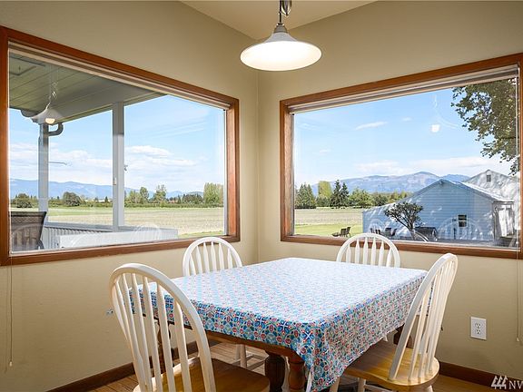 Classic farmhouse on 25 acres & river frontage. Incredible views over the fertile farmlands, river and out to Mt Baker, this charming 3 bedroom, 2.5 bath home boasts a main floor master suite w/ walk-in closet & private bath. Kitchen w/ breakfast nook. Large dining & living room w/ gas fireplace. Light, bright and airy upstairs featuring 3/4 bath, 2 bedrooms & den w/ great river view. 36'x36' shop plus a two car garage, fruit trees. Wonderful location surrounded by farmland, great spot to fish!