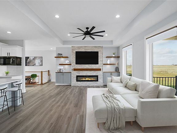 Welcome home to Urbandale's Coyote Ridge development. This gorgeous contemporary home features a private backyard, with a large covered deck--perfect for all seasons. The main level offers an inviting entryway with expansive open-concept living and dining; highlighted by oversized windows and tray ceilings. The functional, wrap-around kitchen, features stainless steel appliances, corner pantry, and a waterfall island. Mudroom with built-in lockers and bench seating, along with adjacent laundry, are conveniently located near garage entrance. The large owner's suite is highlighted by the tray ceiling, spacious shower with beautiful tile throughout, including frameless glass enclosure, and walk-in closet with custom shelving. Two more bedrooms and full bathroom round out the main level. Finished basement with an expansive living/recreational area space, includes a second fireplace, wet bar, two bedrooms, a full bath, and more than enough storage space. Conveniently located, with easy access to all that Urbandale/Grimes/Waukee have to offer!