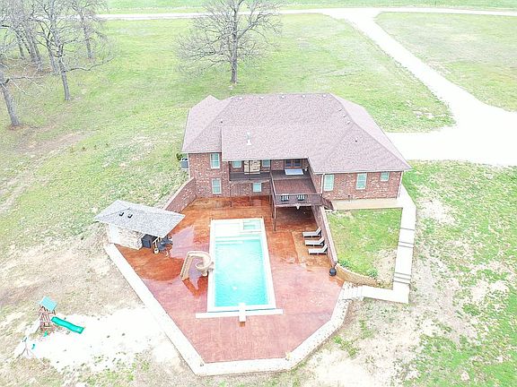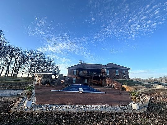 3% will be paid to buyer agents’. Welcome to your dream oasis at Stockton Lake! This stunning property offers something for everyone. The 4,200 sq. ft. custom-built, all-brick home, boasts unparalleled luxury and comfort. Upon entering the main floor, you'll have an open kitchen, living room, and dining area. The kitchen is a chef's delight with custom maple cabinetry, granite countertops, a large island with sink, a range hood over the large 5 burner LPG cooktop, and stainless steel appliances. Hardwood flooring and a stone fireplace increase the living comfort. Onyx finishes throughout & in the master bath add a touch of elegance to the space. Efficiency is met w/ the multi-source heating and air system designed for year-round comfort. Venture downstairs to discover a fully finished basement, perfect for entertaining, with a spacious open floor plan, two bedrooms with ample closets, a bonus room, and a concrete safe room for added peace of mind. Step outside to find a 40x80 red iron shop equipped for all your needs, including a 1/2 bath, room for storage, entertainment, and hobbies. The highlight of outdoor living is the Leisure Ultimate Custom 40' Heated pool and spa. It offers year-round enjoyment with its automatic safety cover, saltwater chlorine generator, heat pump, diving board, slide, deck jets, and a rock pool house with a customizable bar. Situated on 16 well-manicured acres with two ponds and chip and seal road access, this property provides serenity and convenience just minutes away from Stockton Lake and a short drive to town. Hawker Point Access is nearby, adding to the appeal for outdoor enthusiasts. This property offers endless possibilities. Don't miss out on the opportunity to own this one-of-a-kind gem!