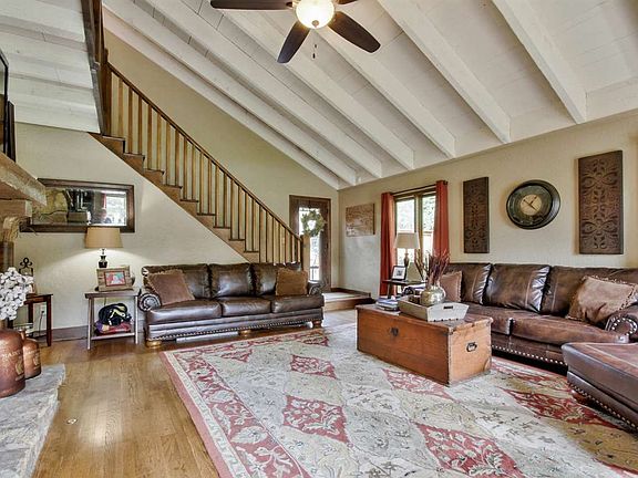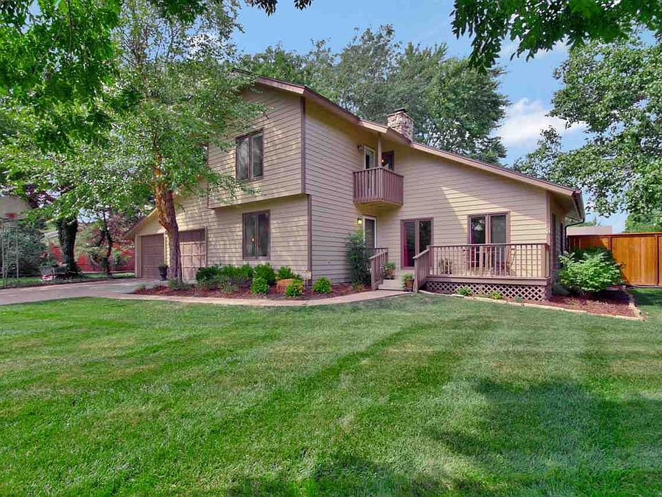 Welcome home! Fabulous updated 4 BR, 2-1/2 BA charmer in desirable Springdale Lakes is nestled on over 1/2 acre at the end of a quiet drive with no neighbors to the East and a house on a double lot to the north. Enjoy a front deck, original hardwoods, neutral decor, fresh paint, a formal dining room with doors leading to a private courtyard, updated kitchen, remodeled bathrooms, a wood burning fireplace with a gas starter, new carpet, updated mechanicals, exceptional basement storage, security system, stamped concrete patio and a beautifully landscaped fenced backyard. The heart of this home is a cozy sunken living room anchored by a dramatic floor to ceiling stone wood burning fireplace, arched doorways, a vaulted ceiling, beautiful wood staircase and a second story balcony with built-in bookcases. The updated eat-in kitchen is well suited for any cook with a two-in one oven with a gas range, mounted microwave, stainless steel appliances, large walk-in pantry, slab granite countertops, stacked stone backsplash, tile floor and abundant cabinetry. The main floor bedroom is ideal for an office with a half bath conveniently located across the hall. Upstairs, you'll find three bedrooms and two remodeled bathrooms. Retreat to a master suite with two closets, a vanity with granite countertops and a beautiful oversized tile shower with a bench. The second and third bedrooms and hall bathroom have a hall doorway that can be closed for privacy; a small second story balcony with a storm door overlooks the front yard and front deck. You'll love hanging out in the finished basement rec room , large enough for your big screen and your favorite game table. Entertaining is made easy with extraordinary outdoor living spaces including an expansive stamped concrete patio, lush landscaping, a large play area with a mature maple tree that provides excellent shade, a fully fenced backyard, sprinkler system and irrigation well on a private lot bordered by a tree line on two sides. New roof in 2009, both HVAC units replaced in 2007/2008 and new A-coil in 2016. Springdale Lakes is a highly sought after area that offers large lots and neighborhood lakes that allow for small boats and fishing; it feels like the country but is within minutes of all the amenities in the city. Don't miss!