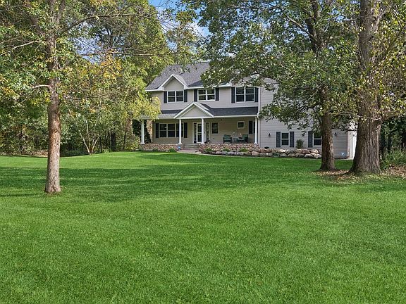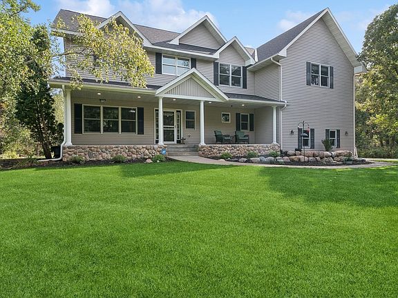 Well designed 2 story home located on 2.5 wooded acres. This spacious 3300 squared foot home has a beautiful kitchen with maple cabinets, large center island, and HUGE pantry. Main floor office/den, fireplace. Upper level includes 4 bedrooms, 2 baths, plus bonus room. Unfinished basement for even more space. Triple attached heated/insulated garage. Front porch, 480 fsf maintenance free rear deck, sprinklers, hot tub and much more!
