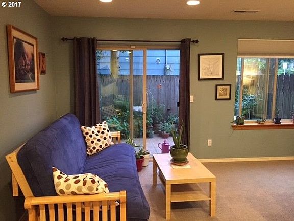 Well maintained Townhouse in excellent location! No HOA dues!! Two bedrooms with two full baths. Master bedroom with full bath and walk in closet. Single car garage with driveway & street parking. Open floor plan, newer appliances, breakfast bar and bamboo flooring. HVAC and built in alarm system. Near Glendoveer Golf & Nature Trails. Only one block from Tri-Met station.