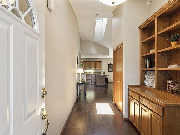 Beautifully maintained single-level home, nestled in a wonderful neighborhood close to schools. This home features an inviting great room layout, perfect for entertaining and everyday living. The great room is enhanced by vaulted ceilings, hardwood floors, and a cozy gas fireplace, and opens seamlessly to the dining room and kitchen. The expansive kitchen is a chef's delight, boasting granite countertops with an eating bar, ample cupboard and counter space, and appliances including a dishwasher, range, built-in microwave, and refrigerator. Retreat to the primary suite, complete with a spacious walk-in closet and an attached bath featuring a walk-in shower and a dual sink vanity. Step outside to your beautifully landscaped yard, where you can relax on the patio or enjoy the vibrant flower beds filled with a variety of flowers and plants. Located in a fantastic suburban area with many parks nearby, this home is just a short distance from the library, shopping, dining, and entertainment options. Don't miss the opportunity to make this exceptional home yours!
