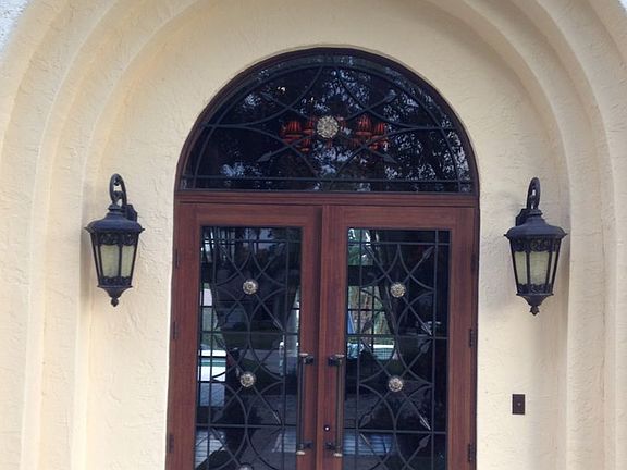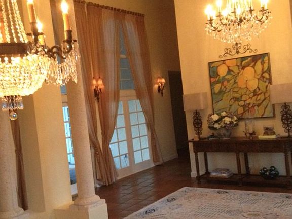 Large one story family home in excellent condition on 1.25 Acres, CBS Construction, barrel tile hip roof, hurricane impact windows, real pecky cypress patio ceiling, 3 car garage, tile and walnut wood floors with french bleed, crown molding, 23 ft volume ceilings, plus large home office with double stacked built in custom cherry cabinetry, Extra large fenced pool/spa and deck, fruit trees, extra wide lot, acreage on canal, bridal path, More...