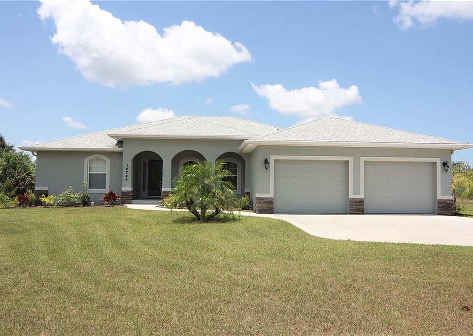 Built in 2013. This great Pool home is selling FURNISHED and EUQIPPED in immaculate move in ready condition. Located in the Gulf Access Waterfront Community of South Gulf Cove, this home boasts extra large rooms and an open floor plan. Vaulted ceiling gives this home an incredible open and spacious feel. Oversized 25'X22" garage with plenty of room for a workshop. South facing Pool and electric Pool Heater have been added in 2016! The large pool embedded in a brick paver pool deck expands over the full width of the house. Strategically situated on an oversized corner lot for maximum privacy, enjoy time well spent on your enclosed lanai. The community has a public boat ramp and more than 55 miles of Gulf access canals. Close to great fishing and the pristine beaches of Boca Grande & Manasota Key, marinas, 12+ golf courses, shopping, medical facilities, bike paths and parks. Transportation is made easy with Punta Gorda and Ft Myers airport to the south and Sarasota to the north. Do not miss this opportunity.
