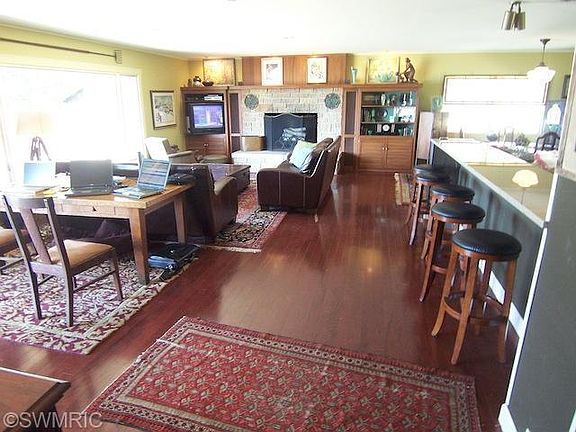 Great 4+ bedroom executive 50's ranch with 102 ft of lakeshore on premier Birch Lake. Impeccably constructed totally out of cedar with 50 yr roof, this year round home, a huge open living/dining/ kitchen recently renovated with beautiful hardwood floors, granite bar top and stainless appliances. Gorgeous lake views from living/dining/kitchen, bedrooms, and upstairs bonus family room/sleeping area. Four well sized bedrooms, 2 baths and laundry all on 1st floor. 2nd floor is a large, private knott y pine great room with sleeping quarters! Privacy awaits you on the large patio and yard with 2 docks and lake frontage landscaped for privacy. Birch Lake is a spring-fed, crystal clear, 95' deep, 295 acre, all-sports lake just 1 hour from the Chicago skyway in SW Michigan. One of the top 10 clean lakes in Michigan, Birch lake's color & clarity is prized for fishing, boating & diving. This home's open floor plan, 100 ft frontage, private yard.