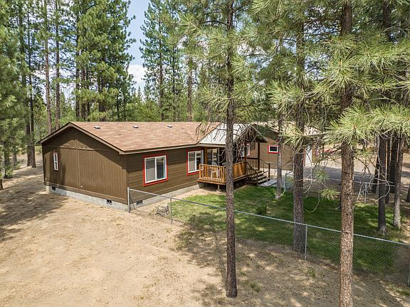 Welcome to your new place of respite, tucked in the Ponderosas! This cute, well maintained and move-in-ready manufactured home in Ponderosa Pines is truly something special. Situated on 1.18 acres, this property is in an excellent location right at the beginning of the subdivision, backs to BLM land, and just a quick drive to paved roads. On the property is a 2-bay shop with an additional storage room, and the cutest bunk-house that was previously used as a home office. The home features a brand new primary bathroom remodel that includes a beautifully tiled shower, new water proof laminate flooring, and new faucet - exterior paint on all structures is also fairly new! Well-built deck/porch space is at both the front and back entrances, small fenced area in the front yard has grass for kids or furry friends to play safely, and there is a gravel circular driveway for easy entry and exit from the property. You won't want to miss out on the opportunity to make this gem your own!