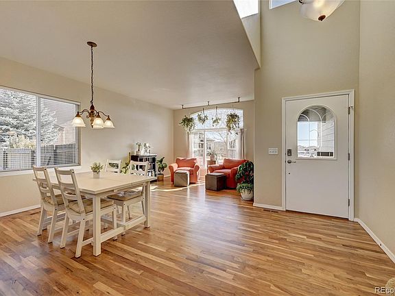 Step into this stunning Struthers Ranch residence nestled on a tranquil cul-de-sac, backing up to open space (easement that will never get developed) and stunning mountain views. Upon entering, soak in the abundance of natural light that dances throughout the home while traversing past the formal living and dining areas. The family room seamlessly connects to the kitchen and features a gas fireplace, plantation shutters and spacious seating for entertaining or cozy nights in. The kitchen itself is a culinary enthusiast's dream, boasting abundant cabinetry, a pantry with convenient pull-out shelving, and a gourmet gas stove. Adjacent to the kitchen, a second dining area opens to a delightful patio and a fenced backyard with breathtaking mountain panoramas for everyone to enjoy. Ascending the stairs, French doors unveil the primary bedroom with an attached 5-piece bath and a spacious walk-in closet with built-in shelving. Three additional bedrooms and another full bath on the upper level create a spacious and open ambiance. Venture down to the basement where you’ll find the perfect mother-in-law suite complete with its own living area that includes a wet bar, microwave, mini fridge, and built-in shelving. Down the hall you will find two more generously sized bedrooms and another full bathroom to complete this impressive lower level. The home is equipped to please all tech fanatics with WIFI controlled sprinklers in the front and back, thermostat, new garage motor, and Ring doorbell. Newer roof (2019) with transferrable warranty. If that wasn’t enough, the oversized 2-car garage is both heated and cooled! Easy access to I-25 will streamline your comings and goings, ensuring convenience. This exceptional home eagerly awaits your arrival! ** The listing agent will be out of town 3/15 - 3/22 with limited service. Please allow 48 hour response time on all offers during this time. For immediate assistance reach out to Deb Swick. debswick@1percentlists.com / (303) 345-0729.