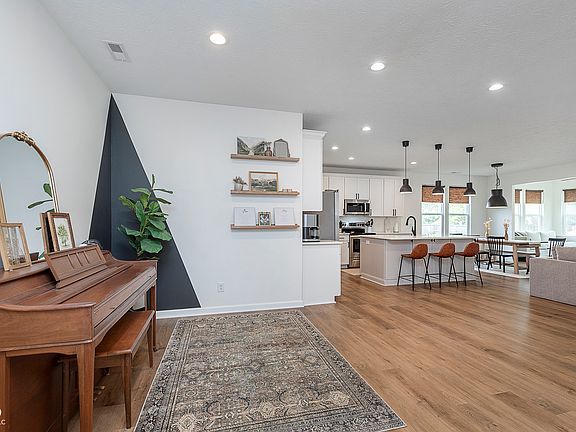 This beautifully decorated, 3-bedroom, 2-bathroom ranch home is just 3 years old and sits on a peaceful cul-de-sac in the heart of Carmel. Enjoy a serene, tree-lined and fully fenced backyard, perfect for privacy and relaxation. The home features a cozy screened porch and sunroom, offering plenty of space to unwind. Step inside to an open-concept design that seamlessly connects the great room, dining area, and a gourmet kitchen. The kitchen boasts a large island, ideal for entertaining. A tray ceiling adds an elegant touch to the spacious great room. The master suite offers a spa-like experience with a double bowl vanity, separate shower, and soaking tub. Located close to the Monon Trail, this home provides both tranquility and convenience. Don't miss your chance to live in this Carmel home!