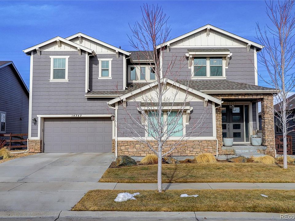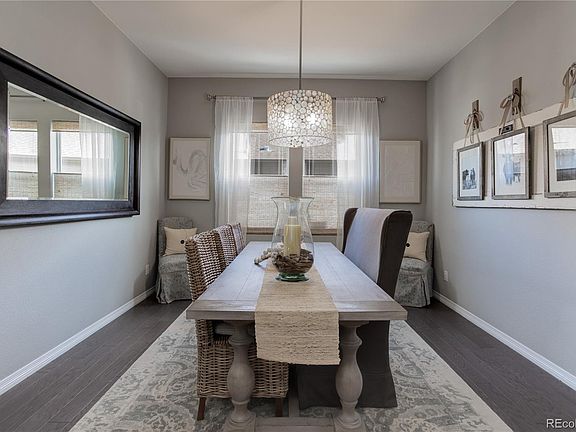 ABSOLUTELY STUNNING! You will fall in love with this beautiful contemporary six bedroom, six bathroom home in the desirable Heirloom neighborhood. Sleek double glass paneled front doors open into a private foyer and lead to a spacious dining room, perfect for hosting any occasion. Retreating to the great room, you will be wowed by the soaring ceilings, an exquisite floor to ceiling tile surround gas fireplace, an industrial chic chandelier, and a wall of glass doors with views out onto open space. The kitchen and great room are immersed as one, creating truly an entertainer’s dream, with a massive island large enough for prep and hosting, recycled glass pendant lighting, and stainless-steel appliances. Entertain under the expansive covered deck, which flows seamlessly from the kitchen and great room for true indoor/outdoor living. Rounding off the main floor is a bedroom with a full ensuite bath, a convenient powder bath, and a mud room/catch all area. Upstairs you will be greeted by an oversized primary bedroom and impressive bath with double vanities, a 10-foot glass frameless rain head shower, a freestanding tub, and a closet fit for a clothes' horse. There are three additional secondary bedrooms upstairs, two of which share a double vanity bath. The fourth bedroom has a private ensuite bath and inviting window seat. The conveniently located upstairs laundry has loads of storage with cabinets and shelving and a utility sink. The finished walkout basement won’t disappoint with luxury vinyl plank flooring, custom truck bed counter, and a large wet bar area with a full-size refrigerator. There is also another bedroom and bath, giving guests their own area to relax. Neighborhood amenities include a clubhouse, zero entry pool, a playground, Cherry Creek Trail access, and you are just steps away from the Rueter-Hess Incline and Reservoir. Come check it out. You won’t be disappointed!