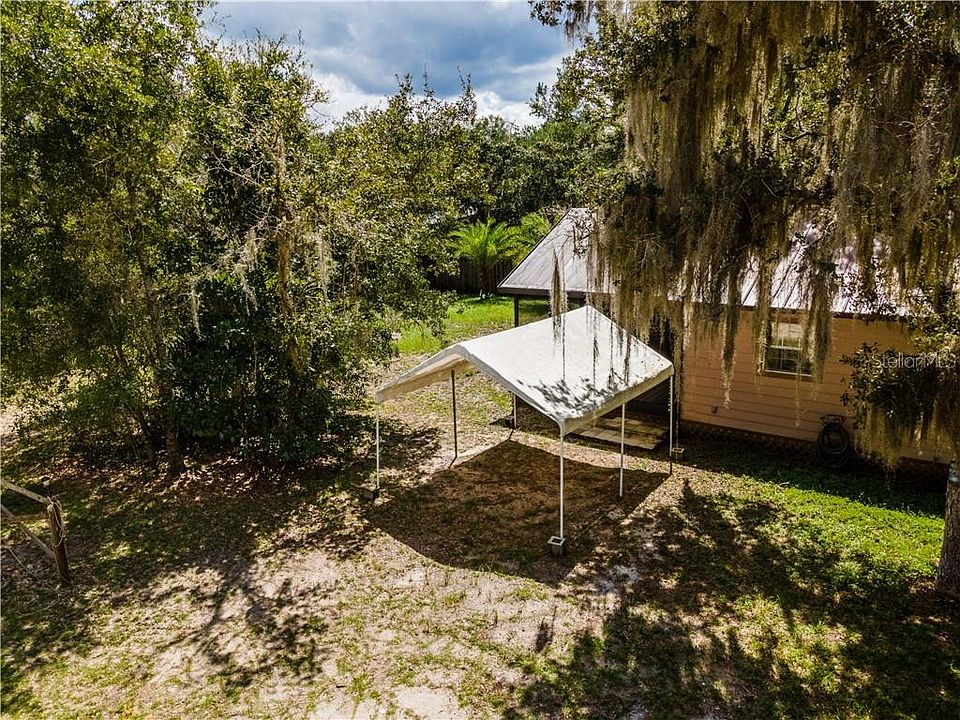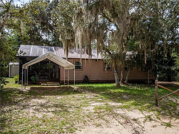 Don't let the age of this home fool you! It is super clean and renovated. Nice private lot is close to the Ocklawaha River, SxS & Off road trails, great fishing, boating and hunting are nearby. As you arrive you will see a large screen room across almost the entire front of the home. Entering the home you see beautiful updated Kitchen with wood cabinets and lots of counter space. Dining area is inside kitchen and back side of stone fireplace makes space warm and inviting. Living room is cozy size with cathedral ceilings, gas fireplace w/ stacked stone and doorway leading to large storage/laundry room. Bedrooms are cozy as well and bathroom has been updated too, includes tub/shower combo. All appliances are included in the sale. Outside there are a few storage buildings for lawn equipment and toys.