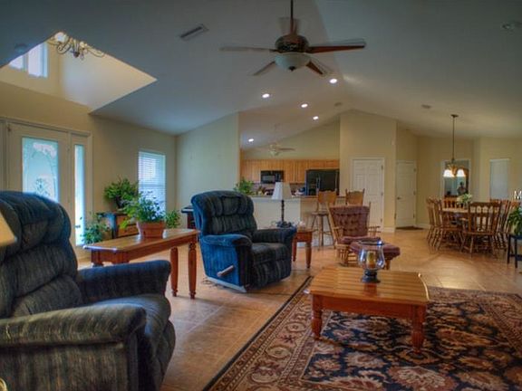 Bring your toys!!! You won't find better views anywhere than on the front porch of this wonderful ranch style home with huge detached metal building with 3 roll up doors. This home built in 2007 offers an open feel with 3 bedrooms 2 baths and 1824 sqft of living space. The great room features vaulted ceilings and opens to the lanai. The kitchen is GORGEOUS with cherry cabinets, snack bar, closet pantry, open to the great room for easy entertaining. The master suite has an oversized walk in closet, large tub and separate walk in shower. Two car side entry garage gives you extra space for all your toys. The huge lanai is equipped with dedicated circuit for hot tub and cable hook up for outdoor entertainment. Large metal out building is perfect for all your toys and hobbies. Store your toys in the detached metal stud building on the property. 42' x 25' base with 12' height at its apex. Concrete slab, electric, and water. Three roll up doors (8'x8', 10'x10', and 8'x8'). There is also pole structure on the property with a roof measuring 20'x25' with electric and water. Whole house generator, gated driveway access and lots of wide open views!