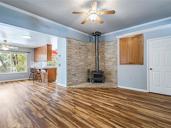 Bright, beautiful and comfortable home in the woods. Popular split bedroom floorplan with plenty of great features that include newer vinyl plank flooring and paint. Cozy living room with woodstove ceiling fans and solar tube lighting. Spacious kitchen with lots of counterspace and cabinets. Large master bedroom, bathroom and walk-in closet. The opposite side of the home has two guest bedrooms and bathroom. The indoor laundry room leads to the oversize two car garage area with shelving, workbench and pool table with pool table light. Outside is a inviting deck area that overlooks a spacious backyard with an above ground heated pool. Side yard may be spacious enough for RV. Also included is a large garden shed with roll up door. Other features include newer roof, newer HVAC, and portable generator. Close to walking-hiking areas, DeSabla Reservoir. Please contact your favorite real estate agent for a private tour.