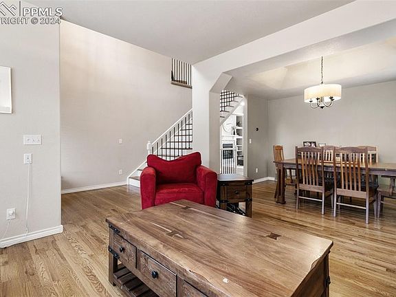 MTN VIEWS * NEW ROOF(2023) * COMPOSITE SOUTHWEST FACING DECK * NEW WOOD FLOORS ON STAIRCASES* NEW LVP IN BASEMENT(2023) * NEUTRAL COLORS * WALK-OUT * NEW AC(2021) *3 CAR GARAGE * WALKING DISTANCE TO UTE VALLEY PARK * MAIN LEVEL MASTER * VAULTED CEILINGS * LOFT AREA * OPEN CONCEPT * NEW CARPET (2023) * UPDATED BATHROOMS * D20 SCHOOLS This lovely home is perfectly situated in the Southface community with coveted views of the front range and Pikes Peak. As you enter, you will instantly be dazzled with the welcoming atmosphere and entry leading to an open and bright main level. Entertaining will be a breeze as the rooms open easily into one another and lend themselves to either a casual or more formal aesthetic. The kitchen is a gourmet's delight with an expansive island and ample counter space (all granite), stainless appliances, gorgeous white cabinetry, eat-in area with easy access to the large west-facing composite deck. The kitchen overlooks the fabulous family room area with extensive built-ins , wood floors and cozy gas fireplace. Just around the corner, the master bedroom can be found with a large walk-in closet and an updated bathroom with tile accents, freestanding bathtub, double sink and loads of natural light. Meander to the lower level and the walk-out basement with new LVP flooring and large rooms offering plenty of options for more game space and/or TV viewing area. Two bedrooms can be found on this level. Head to the upper level and the loft area offers another spot for a small study area. Two additional well appointed bedrooms and an updated bathroom can be found on this level. This home has many upgrades to include: roof, flooring, bathrooms and so much more. Other special features include: AC, composite wood deck, walk-out level , fenced yard and so much more. You will appreciate the access to Ute Valley Park, shopping, restaurants and schools. All in all, a true gem not to be missed!