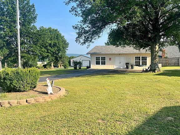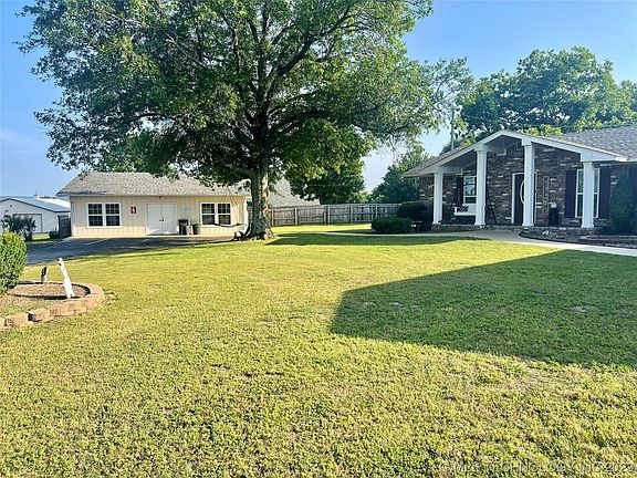 This 4 bed 3 bath updated brick home situated on +/- 1.28 ac complete with a detached 36x30 shop/garage is ready for you to call home. Detached garage/shop includes central H/A and full bath that could be used as a guest house/additional living quarters. Great location with a country, peaceful feel, yet so close to town. Fort Gibson school district! Home has been tastefully updated with higher end finishes such as travertine floors, walk-in oversized travertine showers, solid wood cabinetry, granite countertops , higher-end stainless steel appliances. Your private backyard oasis awaits you with a spacious patio, pergola, pool, deck, fire pit, & a designated place to nap in your hammocks. Perfect for relaxing & entertaining! Call today.