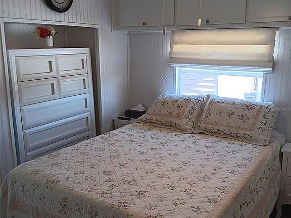 Escape to the heart of Englewood and discover the perfect winter retreat. Located close to restaurants, beaches, golf courses, grocery stores and more. This 1+ bedroom, 1 bathroom cozy living space in being sold turnkey. There's updated plank flooring throughout, new kitchen cabinets with beautiful butcher block counter tops, propane stove and A/C updated in 2018. HOA Fees are only $140 monthly and that includes water, sewer lawn maintenance and all amenities and you own the land. Holiday Travel park is a 55+ gated community with so many must-see amenities. Engage in friendly competition on the bocce ball and horseshoe courts or enjoy leisurely moments on the shuffleboard court. The spacious recreation center offers a pool table, an indoor pickleball court, and a variety of card games. Optional boat or RV storage is available on a rental basis. Embrace in a slice of paradise in this delightful property, perfect for a cozy winter escape or peaceful retirement. Holiday Travel Park offers an exceptional lifestyle. Don't miss out on this opportunity to make the charming retreat your own. Your dream of owning a winter getaway awaits.