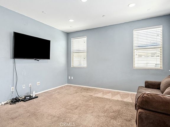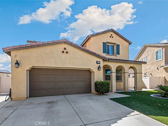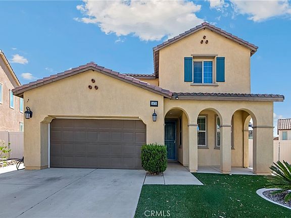 Pulling up to this home you will notice that it's on a quiet street that ends in a cul de sac. The front yard has been beautifully remodeled with Turf and a planter showcasing a lovely Sago Palm. The cozy front porch is ideal for a little sitting area and when you step inside you are greeted by warm brown plank flooring and an open layout. The "Bonus" Room is at the front of the house with an adjacent 1/2 Bath. The Living Room, Dining Room, and Kitchen are all 1 flowing, open space. The Kitchen boasts Cherry Cabinets with a complimentary light colored granite, stainless appliances, a step in pantry, and a deep farmhouse sink. Upstairs, 2 Bedrooms sit across from each other down 1 Hallway, sharing a Bathroom with a single sink vanity and a shower/tub combo. The Laundry Room is down this Hallway and it has a shelf for storage. The Primary Suite sits by itself down another Hallway and it has a dual sink vanity, a soaking tub with an attached shower, and a large Walk In Closet. The current Homeowners really sunk some money into the GORGEOUS BACKYARD with extensive concrete work and other additions. There is an insulated Patio Cover with 2 ceiling fans and an outdoor Kitchen that features a BBQ, Outdoor TV, and Seating for 4! There is a HUGE GRASS AREA to enjoy and a mow curb surrounding the entire fence area that has been planted with some nice greenery and flowering plants. One of the 2 Large Side Yards has an above ground spa with a gazebo while the other one is a blank canvas for you to create your dream outdoor space!