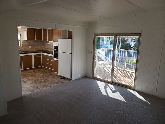 **CHECK OUT OUR VIRTUAL TOUR VIDEO LINK UNDER THE INTERIOR DETAILS!** Move into this wonderful home in a beautiful park with friendly people and a great central location to all Eugene (and Springfield) has to offer, it can be yours before the new year! This recently remodeled 2 Bedroom, 1 Bathroom 800 square foot mobile home has been updated throughout and is move-in ready today! This listing is for mobile home only and is being sold for cash with no seller financing or rent to own options available. Call Roy at #541-632-4329 to set up a time to view this for sale by owner home. The entire house has been upgraded giving it a new feel! The following updates have been completed in natural warm colors: The Kitchen has newly updated counters, new dual tub stainless steel sink w/faucet, new black glass stovetop, new in wall convection oven, beautiful backsplash and new vinyl floors. Refrigerator is also included. The Bathroom has been updated with paint, updated countertops, sink, bathtub with new hardware, new toilet, and new vinyl floors. Full size Washer and Dryer included. The entire interior of the house has been freshly painted throughout. The remaining rooms have new plush, soft, light grey carpet installed. All hardware and light fixtures throughout the house are matching and give this home a new updated look! The living room has vaulted ceilings, a 40 sq foot extra addition, and many windows allowing in lots of natural light! The master bedroom is large with 2 closets and 2 windows. Other amenities included in this house are: Close to shopping, restaurants, gym, and bus lines! Updated Vinyl Windows Locking Metal Shed 6.5 ft X 8 ft Large Covered Front Porch with deck Covered Carport (Covered area is 25 ft. long, 15 ft. wide, and 9.5 ft tall) You can fit 3 cars in your long driveway! Covered Back Deck Sprinkler System - In Ground This mobile home is located in the quiet safe neighborhood of Falcon Wood Village Park where monthly space rent is currently $715 plus water, sewer, and garbage/recycling. This 55 and over park is full of friendly people who wave as you drive by giving you a feel of community and how neighborhoods used to be. This park is located near the water's edge, under a canopy of beautiful large trees and includes many of the following amenities with your monthly dues: Resident Owned and Planned Community Social Activities Card games Coffee and Doughnuts (Thursday Mornings) Crafts Holiday Celebrations! Recreational Clubhouse Facilities (available for tenants to hold events) TV in club house that has sports channels! Swimming Pool/hot tub(seasonal) with common area and available Grill and fire pit for use! Library Billiard Room Off-Street Parking Boat/RV Storage Waterfront Park with limited Access to Water for Tenants Covered Car Wash Station available for tenants On-Site Staff