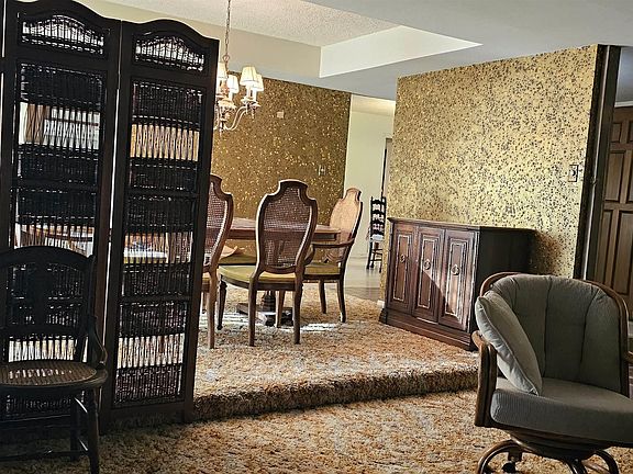 Step into a time capsule of vintage charm in this remarkable 1970's former model home. Perfectly preserved this house offers a nostalgic journey back to an era of groovy style and retro elegance. From the iconic shag carpet to the mesmerizing foil wallpaper and cedar and shake walls, every detail exudes the essence of the 70's. As you enter you will be instantly transported to bygone era. This spacious home offer both formal and informal living, two fireplaces and a wet bar., The front gate opens to a private courtyard offering privacy and a quiet space to enjoy the morning. Step outside to the patio and marvel at the expansive backyard, a blank canvas awaiting your personal touch. Located in a charming neighborhood this home is surrounded by amenities that cater too modern day needs. Embrace the opportunity to restore this gem to its former glory or simple revel in its timeless charm.