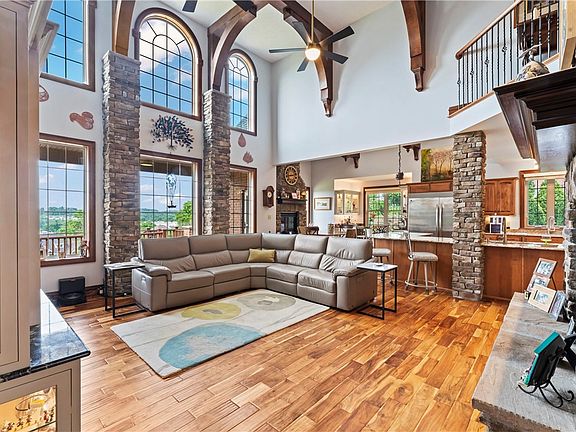 Magnificent Old world charm throughout. Enter through the stone archway near the three car garage adorned with half round gutters, round downspouts, and rain leader boxes to complete the stunning appearance of this home. Five bedrooms, four full baths, one half bath, and large open spaces on each floor. Some of the timeless details are the stone fireplace surrounds, wood beams, stained trim and doors. The rear view allows you to see for miles from the rear deck. Large first floor spaces and the Owner suite on the main floor make day to day living convenient. The basement contains a living space, billiards area, full kitchen, and bedroom that can be used for overnight or long term guests. The second floor has three bedrooms and two bathrooms. One large second floor bedroom has a private bathroom and WIC. The three car garage has floor heat and the one car garage has a wall mounted heater. The sophisticated finishes and four fireplaces make this large home feel warm and comfortable.
