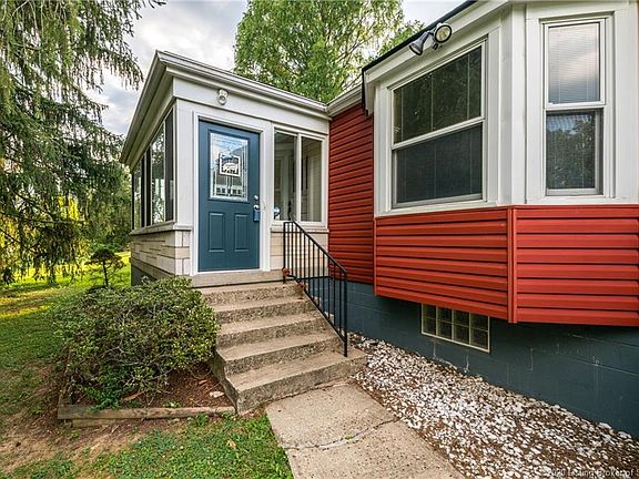 This well built 2 bedroom, 1 full bath home is located on Old Ford Rd featuring almost one entire acre! Nestled far from the road amid rolling hills and trees you feel like you are in the country yet close to all the great amenities that New Albany is famous for. The front entry has a cozy heated/cooled room to cuddle up with a book or to just sit and enjoy the views. The living room has an electric fireplace & arched doorways that add the charming character you feel when entering this home. The kitchen is spacious with plenty of room to gather and eat meals, all the appliances are staying with the home. There is beautiful original wood flooring in the main living areas. This home has a full unfinished basement that was professionally waterproofed and can be finished into additional living space or would make a great craft/handyman area. There is a lower level attached 1-car garage and updated energy-efficient windows. The security system stays for peace of mind. The clothes washer and dryer are also included, and currently upstairs in the side porch area. There is a sink and hookups to have the option to move to the lower level. There is an awning that provides shade is you need to sit on the juliett balcony/deck & relax. The meticulous care shows through in every inch top to bottom. The back yard can accommodate whatever you desire. There is an oversized shed to store yard tools. Older established neighborhood. Easy to show and immediate possession to new buyers at closing!