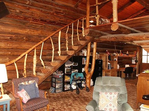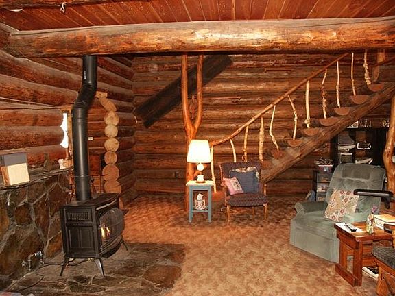 Enjoy the quiet life in this beautifully crafted 2 br 1 1/2 ba Log home. This custom, rustic, authentic country gem is at the end of the road on the top of the mountain.An additional 2 br 1 ba guest house and also a small cabin is also on the property. The land is treed with great mountain views. There is a seasonal creek as well as a private pond, a 32x62 barn and fruit trees.
