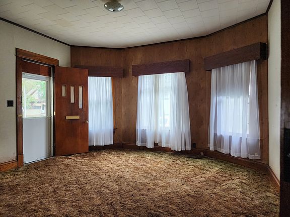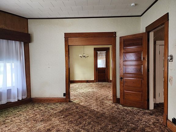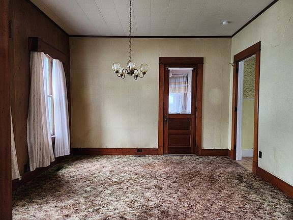 Great investment or started home!! NEW AC unit just installed Aug 2023. Furnace serviced by Paitson's. Solid house on a corner lot with dry basement and detached garage. Lots of patio and porch space. Large rooms, tall ceilings. Hardwood under carpet. 2 pristine leaded, stained glass windows. Electric has been updated. Seller has lived here for the last 81 years.