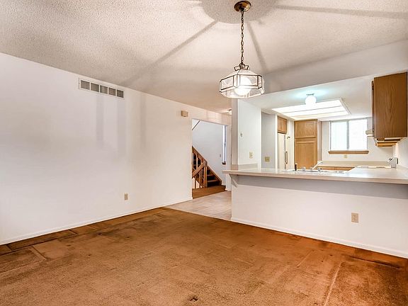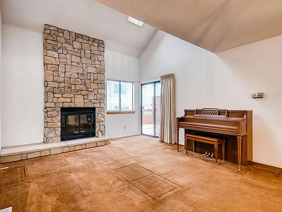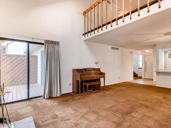 Clean, well kept townhouse right on Highline Canal Trail. Kitchen opens to living room which has vaulted ceilings and a wood burning fireplace. Large loft in addition to two bedrooms. Basement is roughed out for a bathroom and has egress windows. Oversized deck, great for entertaining. Lots of storage. Quiet community. This is on Quebec Way, not the busy Quebec St. Close to public transportation, trails, parks, dining and shopping.