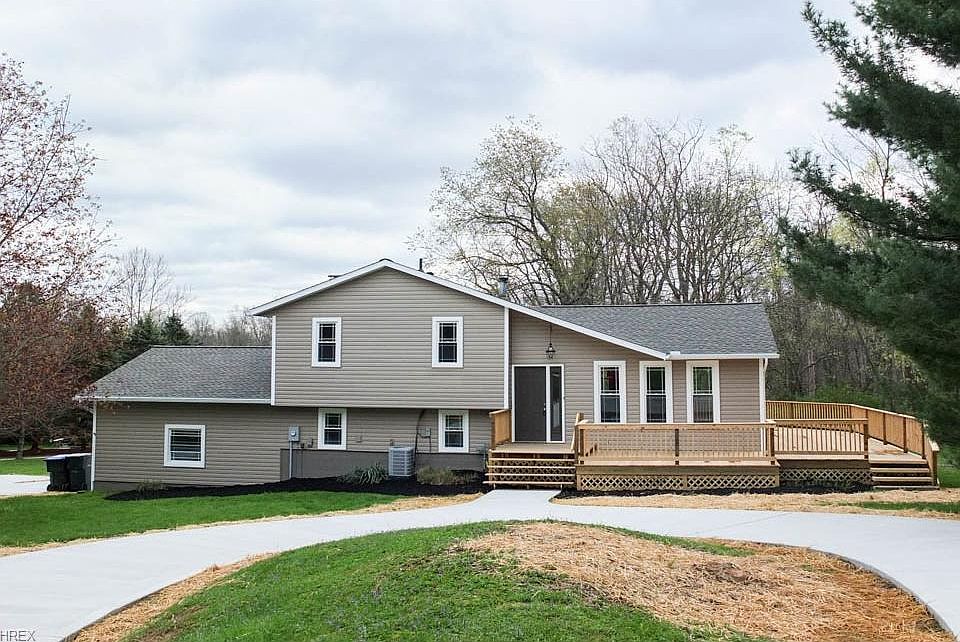 Beautifully remodeled 3 bedroom, 2 full bath home with a stunning kitchen on over 3 acres! This home is filled with updates: new concrete, siding, roof, garage door, deck, windows, granite countertops, stainless steel appliances, new A/C and furnace and some new interior doors! Nice open floor plan with the kitchen, dining room and living room. Gorgeous kitchen has a breakfast bar, granite countertops, center island, tile backsplash, stainless steel appliances and new cabinets. There are three bedrooms, the master has direct access to the full bath. Remodeled full bath has built-in storage, an updated vanity, tile flooring and tile surround. The lower level offers a finished laundry room, an updated full bath and a spacious family room with a beautiful stone fireplace and slider to the back patio. Oversized 2-car side load garage, too! This amazing lot offers a great turn around driveway with new concrete, a huge back patio and a new wrap around deck - the perfect entertainment area! Don't miss out - call today for a private showing!