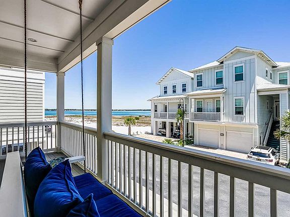 Come to the Beach to Relax and Refresh! Sit back on your front porch swing and catch the breezes and views of the water. Inviting 4 bedroom, 2.5 bath, furnished Seaside beach home with potential for private residence or vacation rental. The ultimate in beach living in gated community with pool and water access to Santa Rosa Sound. Upgraded with many designer touches that include updated lighting fixtures, hardwood flooring, square edge custom cottage trim, high ceilings, tall 8-ft doors, crown molding throughout and extensive recessed lighting. The cook will delight in well-designed open concept that features kitchen with island, breakfast bar, custom solid wood soft close cabinets, tiled backsplash, granite counter tops, and 2020 stainless appliances that include refrigerator. The first living level also features great room, dining area, powder room, bedroom/office/flex room and wrap around balcony with storage closet. On the second living level are two guest bedrooms, guest bath and the master bedroom. Spacious master bedroom has tall windows, master bath with tall double granite top vanity, tiled shower, and walk in closet. Other features are parking for 8+ vehicles with access from two streets, covered patio on the ground level and storage area. Only a short distance to bike the National Seashore or to a walk-over on the Gulf of Mexico with white sand beaches and Emerald waters. Homeowners enjoy being conveniently close to the Sound and minutes away from local attractions, shopping, and restaurants. By the Sea Amenities include community pool & hot tub, community fire pit, pool bath house, and deeded access to beach on the Santa Rosa Sound.