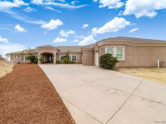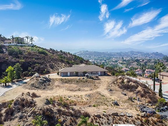 Discover unparalleled luxury and elegance in this custom-built 5-bedroom, 4.5-bathroom estate, offering 4,960 square feet of refined living space in Rancho San Diego. Situated on a sprawling 2-acre lot with breathtaking views of the El Cajon Valley, this home combines sophisticated design, spacious living areas, and endless potential for customization. Step inside to soaring 10-foot ceilings adorned with crown molding, creating an airy and grand atmosphere throughout. Elegant tile flooring guides you through the main living areas, while new plush carpeting in the bedrooms adds a touch of comfort. The heart of the home is the gourmet kitchen, featuring granite countertops, beautiful custom cabinetry, and upgraded dual-pane windows that flood the space with natural light. Designed for both comfort and convenience, this home offers a variety of living spaces including two living rooms, an expansive family room that seamlessly flows into the kitchen, a dedicated office, and a charming library—perfect for remote work, study, or relaxation. Each of the five spacious bedrooms has direct access to its own bathroom, ensuring privacy and convenience for family members and guests. The enormous primary suite is a true sanctuary, boasting access to the luxurious ensuite bathroom, complete with a separate soaking bathtub, rainfall shower, dual vanities, and custom closet space. Outside, enjoy the oversized 3-car garage with a dedicated gym area, providing plenty of space for both vehicles and fitness.