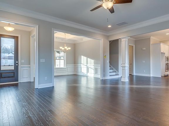 The coordinated and spacious Deerfield floorplan is a perfect option for a growing family, featuring large living areas and spacious bedrooms for privacy. Enter through the foyer into the stunning great room featuring elegant hardwood flooring and an attractive fireplace. The first floor also houses a graceful dining room well-suited for formal gatherings. This open floor plan flows from the great room into the breakfast room and spacious gourmet kitchen complete with a great island, granite countertops, and walk in pantry. A large bedroom connected to a full bath completes the first floor. The second floor truly is a private retreat from the large first floor living areas, featuring 3 bedrooms with large walk in closets, two full bathrooms and a magnificent master suite. The master bedroom is open and airy with 9 foot tray ceilings and a gorgeous master bathroom with separate shower and garden tub, plenty of storage space, and a double vanity. An enormous walk in closet completes this impeccable spa like sanctuary. Finishing the spacious upstairs is an appropriately placed laundry room for easy clean up and accessibility. The flowing balance and large size of the Deerfield is an absolute must for a growing family's comfort and needs.