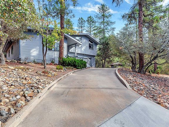 Open and inviting home set amongst the pine trees in desirable Hidden Valley Ranch. Vaulted beamed ceiling and 3-way fireplace in living room. Home is well maintained with beautiful wood floors and trim. Stunning granite and oversize skylight in very usable kitchen. Deck off large master bedroom with forest and hill views. Second deck off kitchen with ample space for grilling, dining and wildlife viewing. New range/oven and water heater in 2019. Lots of storage in oversize garage that includes workbench and built-in shelving. One bedroom is currently used as an office and includes bookcase and desk. You'll be just minutes from downtown Prescott shops and restaurants when you settle in this quiet and beautiful neighborhood.