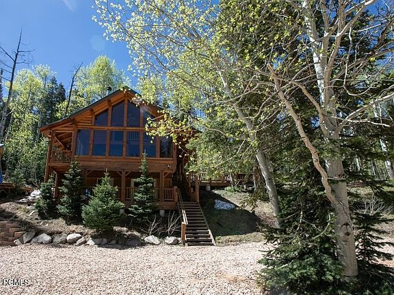 Step into serenity with this tri-level log house masterpiece with several decks and property trails. Elevate your summer living or full-time dwelling with this year-round access. The dramatic windows spanning both floors leave you with breathtaking views. Primary Bedrooms on both upper floors give you option to have friends or family stay comfortably. The lower floor has its own entrance giving you the option to do nightly rentals or long-term rentals if you choose to do so. The decks have been thoughtfully equipped with heavy duty curtains to easily keep out the elements if needed, Excavation and stonework gave this mountain home secure drainage and flat pad for a future garage that will stand up to spring runoffs for many years to come. Escape the city and breathe in the fresh air with this well-built mountain Gem.