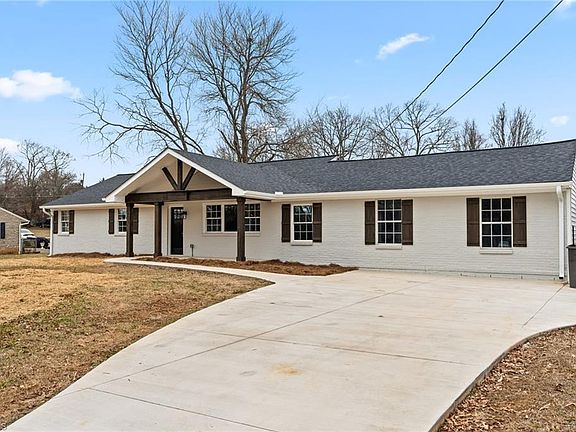 Price Improvement!!! This beautifully updated one-level home with a basement features a freshly painted brick façade complemented by rustic wood beams on the covered front porch. The back patio is perfect for entertaining or relaxing. Inside, the home boasts a bright & airy open-concept layout with stunning new flooring. The kitchen features crisp white cabinetry, stainless steel appliances, subway tile backsplash, a large center island & a pantry. The entire space is flooded with natural light. The spacious primary bedroom is a true retreat & the updated bathrooms include sleek fixtures & contemporary finishes. The laundry room offers extra room for a freezer or storage. This home is packed with upgrades including a NEW HVAC system, NEW roof, ALL NEW plumbing & electrical, NEW water heater, & NEW sheetrock & paint throughout. Conveniently located just minutes from Baptist & Forsyth Hospitals & the Kernersville VA Clinic. Come out & see all the details that make this house a true gem!