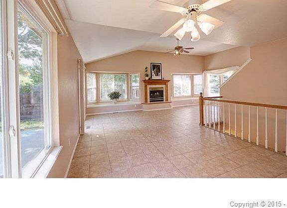 Charming two-story with a wide-open & bright floorpan. Expansive vaulted ceilings on both the upper & main levels, multiple sunny bay windows w/ window seats & architectural details throughout, gas fireplace. Brand new vinyl windows, extensive ceramic tile & hardwood, fresh paint. Great spacious master suite, entertainment space in the basement, including a wetbar. Beautifully maintained & updated, including a brand new roof. Awesome private backyard. Main-level laundry. Quick commute to Fort Carson.
