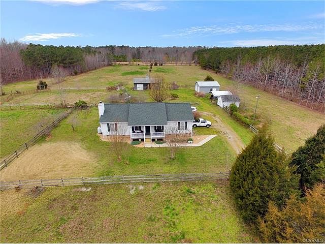 BRING YOUR HORSES! Welcome home to country living at itâEUR(tm)s finest! Meticulously maintained by the original owner,this rancher is nestled on 8 acres and includes a horse barn, two-bay detached garage, and additional storage buildings.As you come up the charming tree-lined drive,youâEUR(tm)ll feel right at home!Enter through the front door,where youâEUR(tm)ll find a spacious vaulted living room,complete with a dramatic rustic wood beam and a gas fireplace.Continue through to the dining room,featuring a gorgeous bay window and convenient access to the kitchen.Enjoy the picturesque view from a second,oversized bay window that serves as the breakfast nook.The bright kitchen also showcases a glass tile backsplash,large pantry and access to the mudroom.Down the hall,you will find two bedrooms,a hall bath with an oversized shower,laundry closet, and a walk-in utility closet.At the end of the hall,the master bedroom greets you with an abundance of natural light,a walk-in closet with custom built-in shelving and an ensuite bath with double vanity and tile flooring.Outside,you will find an expanse of cleared acreage.Experience the peace of life on the farm in this move-in-ready home just minutes from I95.