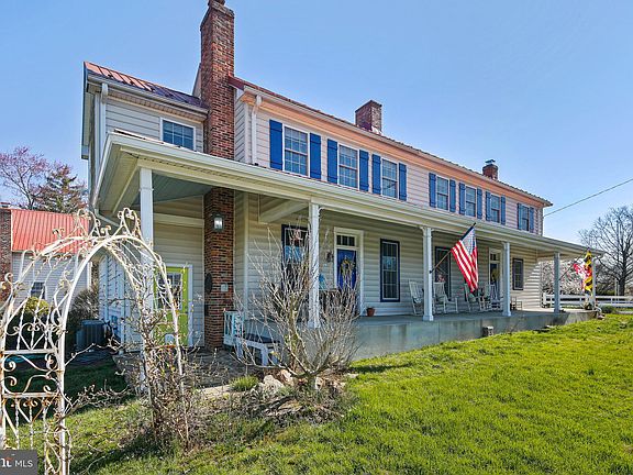 Welcome to Justifiable Farm originally established April 1795 just 19 years after the birth of our country in 1776. The grand history of this home and property with its fascinating story and architecture showcases period style historic country living balanced with spectacular upgrades to give a perfect blend of Early American charm and modern living conveniences. Dating to 1795 the original home was added to over the years as the farm prospered and enjoyed several transformations from humble growing home to country inn and community gathering place on the original Baltimore Pike. Here is where important information would have been made available to local farmers and merchants by those traveling from east to west spreading news between the great cities of Baltimore and Pittsburgh. So many stories and tales have been told sitting on the grand covered front porch and around these fireplaces! Recent upgrades include a fabulous gourmet kitchen makeover highlighting period appropriate cabinets coupled with a grand open concept showcasing one of the original fireplaces. Literally the best of two worlds! The huge granite topped island and wide open space invites large gatherings in this important area of the home. Also featured are three full updated baths, one located on the main level and two on the upper level. Original wide plank flooring are a spectacular feature of this home. They compliment the many original fireplaces located throughout the living areas. Every room boasts history and style. A modern mudroom and main level laundry is so convenient. The main level bathroom also services what could be an office, den or even an aux-pair suite. So many possibilities. The spacious primary bedroom is unique in that is its extra large for this period and boasts it's own ensuite full bath. Two staircases connect both levels and the period original doors, locks and hardware are just priceless. History is everywhere you look. An additional bonus is a modern lower level family room. HVAC , electrical and plumbing have all been updated during recent renovations. Modern touches that make all the difference. The 2.72 acre lot gently slopes to the west and provides wonderful landscaped views highlighted by a westerly located conservation area to ensure future generations enjoy the property as well. You will appreciate the historic smokehouse which is another interesting feature. The huge modern garage will accommodate 3-4 cars and features two offices or storage areas. It's sure to delight home hobbyists or car enthusiasts. Bring your own imagination! This building also features a second level guest or living quarters complete with full bath and laundry facilities. Friends and guests can enjoy privacy and views from their second level balcony. An additional garage and storage building is also a highlight along with a whimsical playhouse for those whose inner child is looking for a place to dream. A piece of Americana history combined with modern marvels and great schools is an irresistible offering. The spectacular features of this one of a kind home will help "justify" your decision to make Justifiable Farm part of your family history. A rare opportunity indeed!