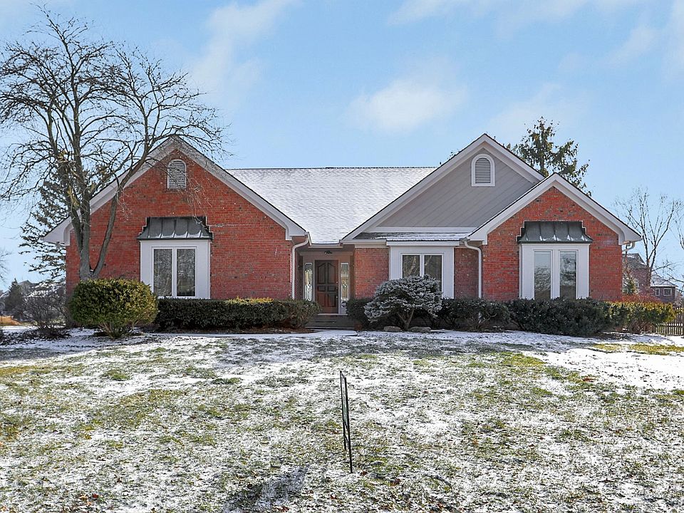 SPECTACULAR WATERFRONT OPPORTUNITY IN DESIRED VILLAGE FARMS! This well maintained, custom brick ranch sits on a professionally landscaped yard overlooking the lake. The home offers over 4,000 square feet of living space, an open layout on main level, terrific three seasons room with panoramic water view, and a kitchen with with breakfast bar with wet bar nook! Cathedral ceilings in great room with large window overlooking the lake. Plenty of storage and oversized back deck perfect for entertaining! Basement is finished and offers large area for recreation, 4th bedroom, wet bar with kitchen, and a full bathroom! Fireplace in both great room and basement.