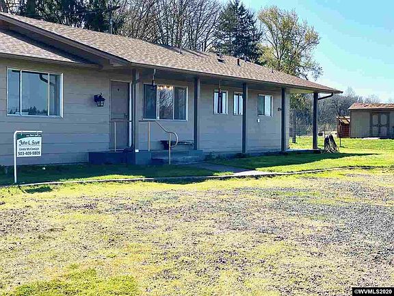 Accepted Offer with Contingencies. This beautiful secluded small acreage is the farm setting you didn't know you were looking for. Mid century built with a walk out full basement. Bedrooms are huge, 2 wood burning fireplaces. Large country kitchen, living room and bedrooms look out on a unique wooded landscape, including the resident bald eagle nest. Wild turkeys and deer visit on occassion. The front of the house looks out on a young filbert orchard and rolling farm land. Original hardwood floors and laminate, indoor laundry.