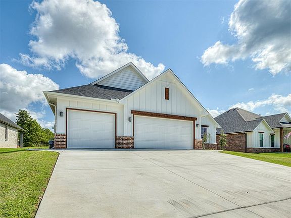 This one will be a showstopper once complete! 4-bedroom, 2-bathroom home located on a quiet, one entrance, cul-de-sac street. The perfect blend of a country feel and urban proximity to downtown Choctaw! The exterior in crisp white with stained cedar accents and beautiful landscaping is welcoming and warm. The open floor with central kitchen island makes hosting a dream! This modern kitchen will feature naturally stained white oak cabinets, champagne gold fixtures, and stainless-steel appliances. The master bedroom features stained beam accents and a luxurious ensuite with freestanding tub and walk-in shower. Two additional bedrooms share a hall bathroom and include walk-in closets. The 4th bedroom is conveniently located toward the front of the home and could also be used as a study, home office, or playroom.
