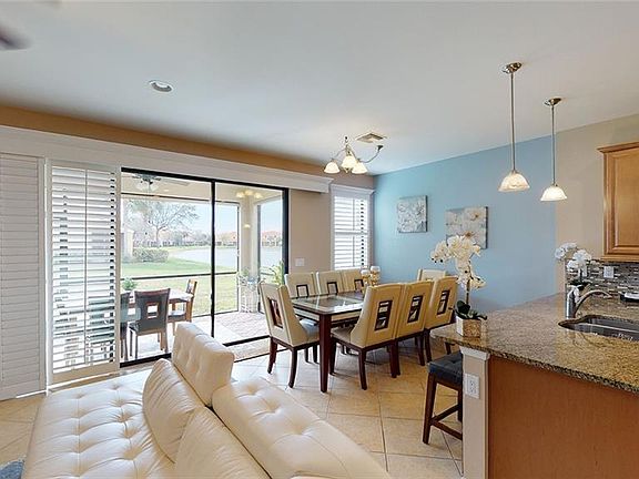 This is a gorgeous newer built 2 story townhome. The sliding doors open up to a screened lanai overlooking the fabulous lake. Beautiful lake views are seen from the living room, kitchen, lanai, and the master bedroom as well. Located in a great school zone, this townhome has a welcoming open floor plan with a kitchen/family room that makes this home great for entertaining. The kitchen has granite countertops, backsplash and breakfast bar. There is an enclosed area under the stairs that can be used as extra storage or even an office. The master bath has dual sinks and a shower. The second bathroom has a shower/tub. There is a driveway with a spacious two car garage. Amenities included in this gated community are: clubhouse, community pool, spa, sauna in both men and women's locker rooms, play area, basketball, tennis courts and fitness room. This home is located close to Gulf beaches, Mercado, restaurant, shopping, I-75 access and everything Naples has to offer