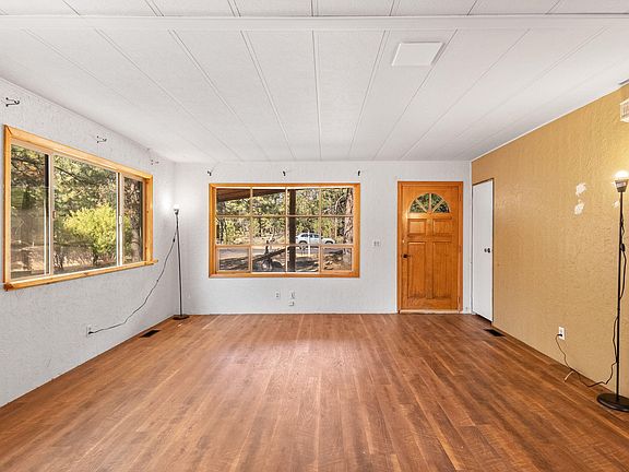 This 2 bedroom, 2 bath, 1,560 square foot manufactured home on over an acre backs to National Forest land. The existing home has been a reliable rental for years. A charming porch and sunroom grace the front, while the rear boasts a covered porch, carport and storage room. The property has a detached shop/garage with unpermitted living quarters, including a bathroom and kitchenette. Outside you will find a pumphouse, shed and partial perimeter fencing. Bring and enjoy your toys, horses, biking and hiking with direct access to US Forest Service trails and fire roads right out your back door.