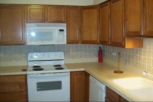 This unit can be rented. Lovely 2 bedroom first floor condo with remodeled kitchen and bath. Wood laminate floor in kitchen and hallway. Newer tan carpeting. Two niced sized bedrooms. Newer doors and trim. Shows well. Coin opperated washer and dryer in basement.