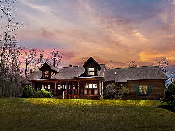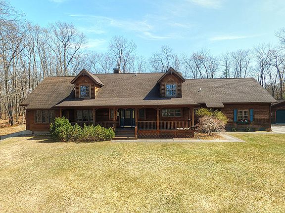 Custom built cedar sided 3 bedroom home on 40 acres of mixed hardwoods. Beautifully landscaped yard. Hardwood floors in the kitchen, dining and foyer areas. Granite counter tops and adorable eat- in nook inside the kitchen. Large butlers pantry. Vaulted ceiling in the living area, field stone fireplace. Spacious master suite, window seats, bath with jetted tub and shower, and huge walk-in closet. Large bonus game room off the upper office area. Finished attached 2 car garage with basement access. Additional 30 x 60 insulated garage with 2 overhead doors and 3/4 bathroom. Nice deck facing the back yard and covered front porch. Fire wood shed. Very impressive and well kept home. Must see to appreciate what this home has to offer. Close to Big Bear Lake.