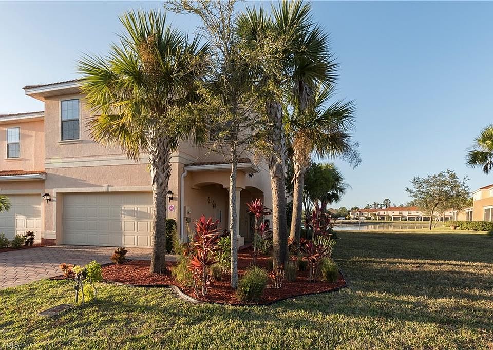 Newer built 2013 gorgeous 2 story corner townhome with Lake view. The house have a fresh paint. Sliding doors open up to a screened lanai overlooking the fabulous lake and fountain. Den has pocket doors and can be used as a 4th bedroom. Located in the best school zone, this townhome has a welcoming open floor plan with crown molding in living, dining, kitchen and all 3 bedrooms. Kitchen has granite countertops, backsplash and breakfast bar. Underneath the staircase ha extra storage. The master bath has dual sinks and shower. Second bathroom has a shower/tub. Paved driveway with two car garage. Garage door has a new garage opener. Amenities included in the gated community are: Clubhouse, Community pool, spa, sauna in both men and women's locker rooms, play area, basketball, tennis courts and fitness room. Great location and close to Gulf beaches, Mercado, restaurant, shopping etc.